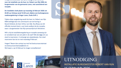 Installatie nieuwe burgemeester Laren op 16 februari 2026