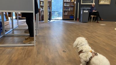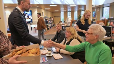 Burgemeester Robert van Rijn komt de stembureaus langs met waardering en gevulde koeken