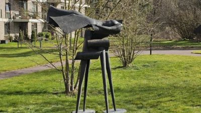 Beeldengroep Klepperman van Elleven het komend halfjaar op plein voor Singer Laren
