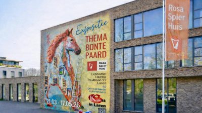 Gigantische gevelbeschildering met ‘Bonte Paard’ zorgt voor serieuze opschudding rond Rosa Spier Huis in Laren