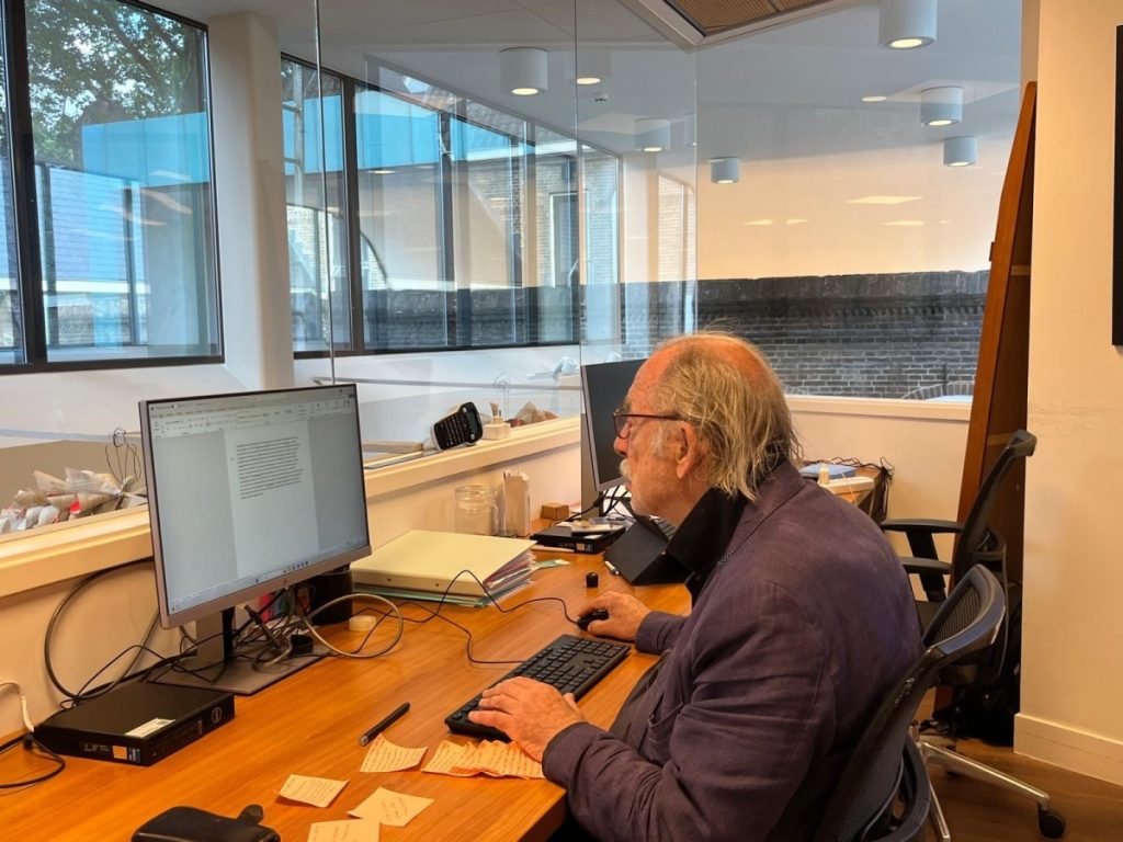 5 aug.- De afgelopen week was het weer eens’ bal op mijn computer. Verslingerd aan de grote hoeveelheid sport het afgelopen weekend met Tour de France Femmes , de WK zwemmen en het teleurstellende kwalificatieresultaat van Max Verstappen in de Formule 1, begaf mijn machine het opeens. Op BBC 2 keek ik naar cricket en nog voordat de bal op het beeld de wicket raakte, ging mijn scherm op zwart. Geduldig startte ik het apparaat weer op, maar na talloze pogingen de rest van de avond zag ik alleen een Apple-logo .De ene keer ‘ met geluid en een balkje’, de andere keer weer’ met een balkje zonder geluid’ . Om gek van te worden. Ik vreesde het ergste. Zo’n storing had ik nog nooit meegemaakt. Zou alle content – ondanks de verschillende back ups in het verleden- ooit nog tevoorschijn komen ? Mijn foto’s, mijn boeken, mijn administratie, mijn films, mijn onlangs gehouden interviews voor het boek 100 jaar basiliek? Het werd een korte en zenuwachtige nachtrust. Zelf ben ik als het om besturingsmechanismen van computers gaat een absolute digi-beet en totaal afhankelijk van anderen. Gelukkig heb ik aan Robert, de zoon van een vriendin van me, een fantastische en inventieve helpdesk behulpzaam als hij is. Zondagmorgen ging hij meteen aan de slag, uitgezonderd de middag om naar de formule 1 race in Hongarije te kijken. ’s Avonds zat hij er weer. Zijn conclusie: de opstartschijf had het begeven. Uiteindelijk lukte het hem via vernuftige omwegen, vraag me niet hoe, een balkje onder het logo tevoorschijn te toveren en via een ingelaste usb stick contact te krijgen met de verborgen content van de computer, maar hoe groot was de inhoud? En was ie beschadigd? Met een vriend lukte het hem na een nacht bestanden inventariseren het aantal voorlopig te lokaliseren op 1.436.772 bestanden. Op het moment dat ik deze column schrijf, geeft een of andere hulpschijf aan, is het nog drie uur zoeken voordat alle bestanden mogelijk zijn gelokaliseerd. Voorlopige opgetogenheid, maar voor mij nog steeds een en abracadabra. Later in de week moet alle content van de verborgen computer overgeschreven worden op een back-up schijf voordat het straks de nieuwe computer in gaat. Stel je eens voor! Hopelijk is de back-up schijf van 4TB groot genoeg. Inmiddels is de nieuwe computer besteld. Tot die tijd loop ik met mijn computerziel wat wezenloos onder mijn arm en scharrel ik wat rond op zoek naar gebruik van computers van vrienden. Vanmorgen, toen ik met Snoetje zijn dagelijkse koekje kwam ophalen in het Brinkhuis, werd het me aangeboden door Leon Schouten, directeur van het Brinkhuis. Op straat was ik inmiddels al aangesproken dat mijn website aangaf dat de Bol-an computer kapot is. Even geduld, staat er eufemistisch in het bericht, maar ik vrees dat dat nog wel even kan duren. Het apparaat komt er pas over drie weken. Al met al voor mij een beetje onwezenlijke tijd. Mijn hele dagritme is in de war. Bol an mensen, Nooit gerealiseerd dat ik zo afhankelijk ben van mijn computer. Ik kijk uit naar het einde van de maand. Hopelijk is dan alles gefixed.