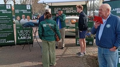De krant is lyrisch. ‘Het is werkelijk een prachtig en voornaam geschenk. Het moet een gelukkige gedachte worden genoemd, dat dit centrum van het Larensch godsdienstig leven als onderwerp voor het schilderij werd gekozen. Hier immers klopt nog immer het hart van Laren. Hoog rijst op het doek het voorfront der St.Janskerk met haar twee slanke torens in de opaal-blauwe lucht De beide torens zijn als een blijde juichtoon geschilderd recht naar den hemel. Achter de zonnige kleur vermoedt men den zangerigen klank der klokken die Laren op zondagmorgen wakker zingen. Hier voelt men, hoe de kerk het middelpunt is waaromheen het leven zich groepeert. waar het religieus sentiment van het volk wordt gevoed en het volk aan zijn godsdienstzin uiting geeft. De in- en uitkomende dorpsbewoners in oude klederdracht geven aan deze kerk niet het aspect van een bezienswaardig monument, maar van een onmisbaar gebouw dat midden in het leven staat. Voorwaar een fraai en voornaam geschenk dat hier aan het provinciaal bestuur wordt aangeboden om er de wanden van zijn gebouw te sieren.’