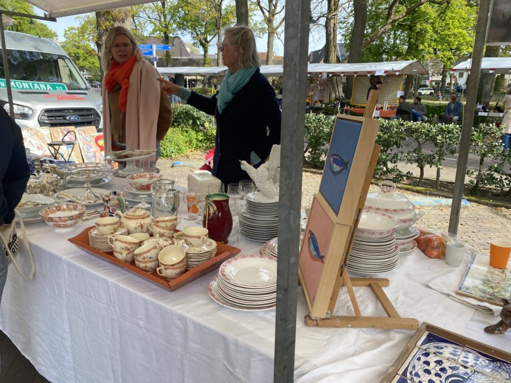28 apr.- Eeen gezellige drukte op de braderie waar een grote afwisseling was in verkoopwaar. Van oude langspeelplaten tot ‘antiek’ en van vrolijke hoedjes tot warme winterhandschoenen.