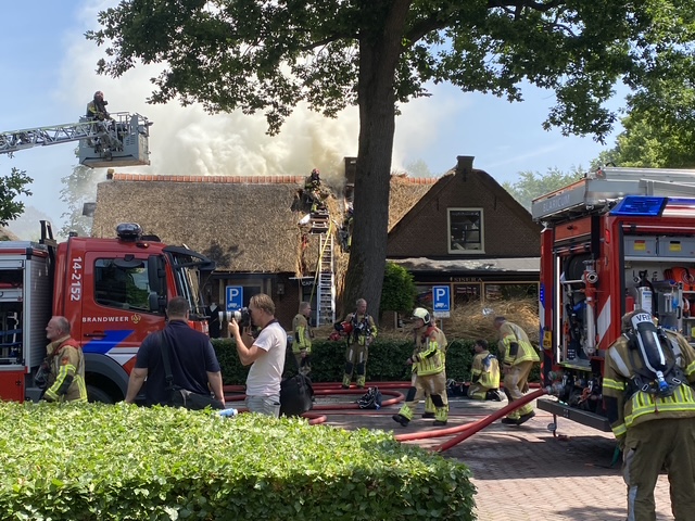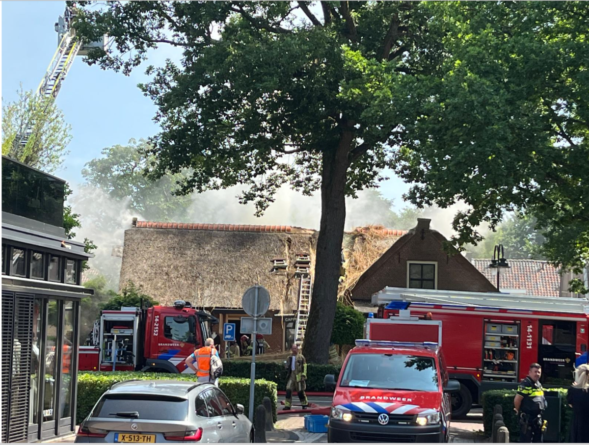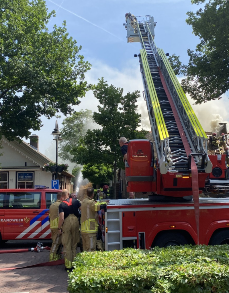 17 juni.- .Een pand met twee kledingwinkels aan de Sint Janstraat in het Noord-Hollandse Laren zijn dinsdag volledig verwoest door een uitslaande brand. De brandweer heeft groots opgeschaald om de vlammen te kunnen blussen.Grip 2. Er werden meerdere NL-Alerts verstuurd vanwege de rookontwikkeling. De brand brak rond 11.15 uur uit in het dak van de woning boven de winkels, en volgde op een explosie die enkele straten verder te horen was. De burgemeester was snel ter plaatse om polshoogte te nemen.