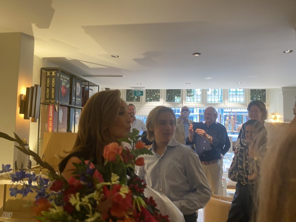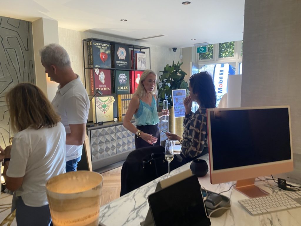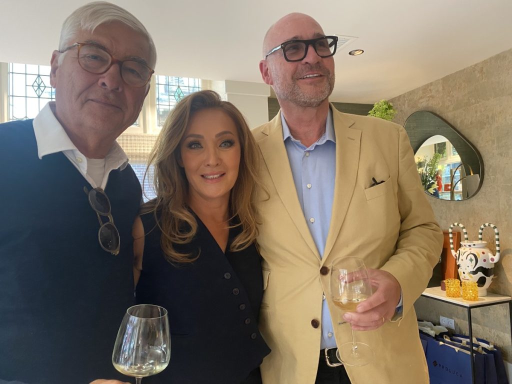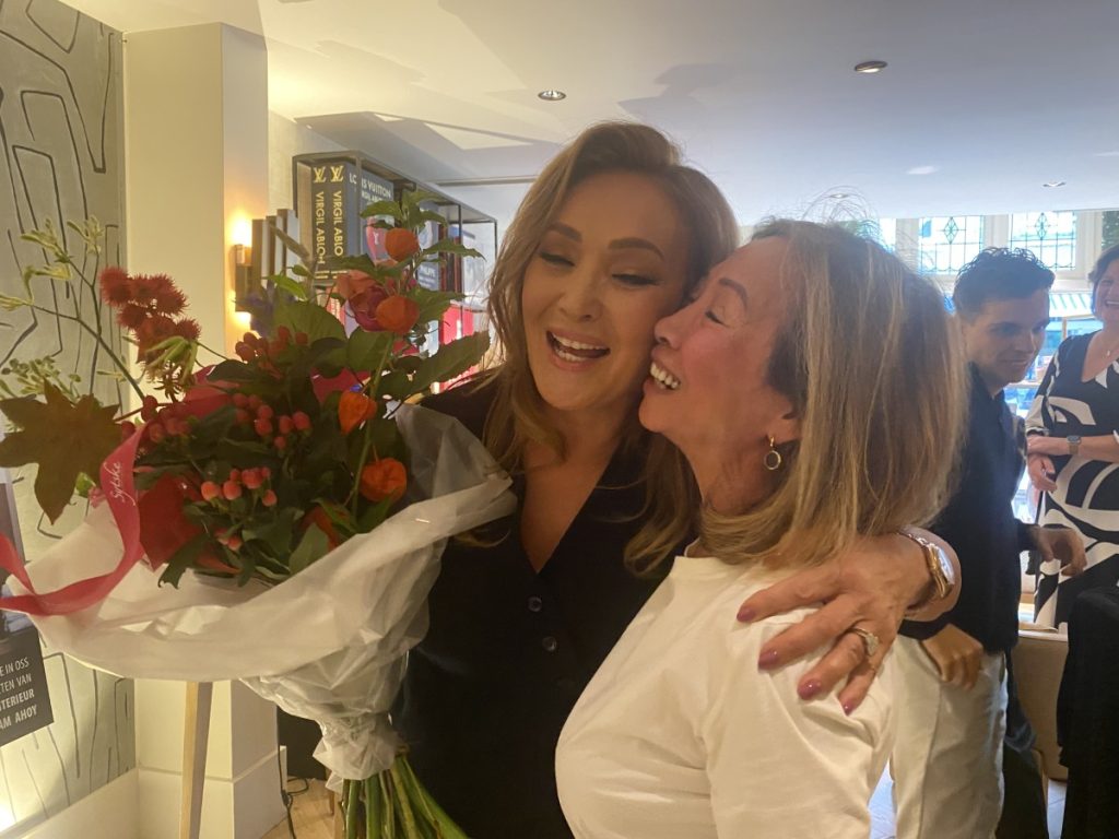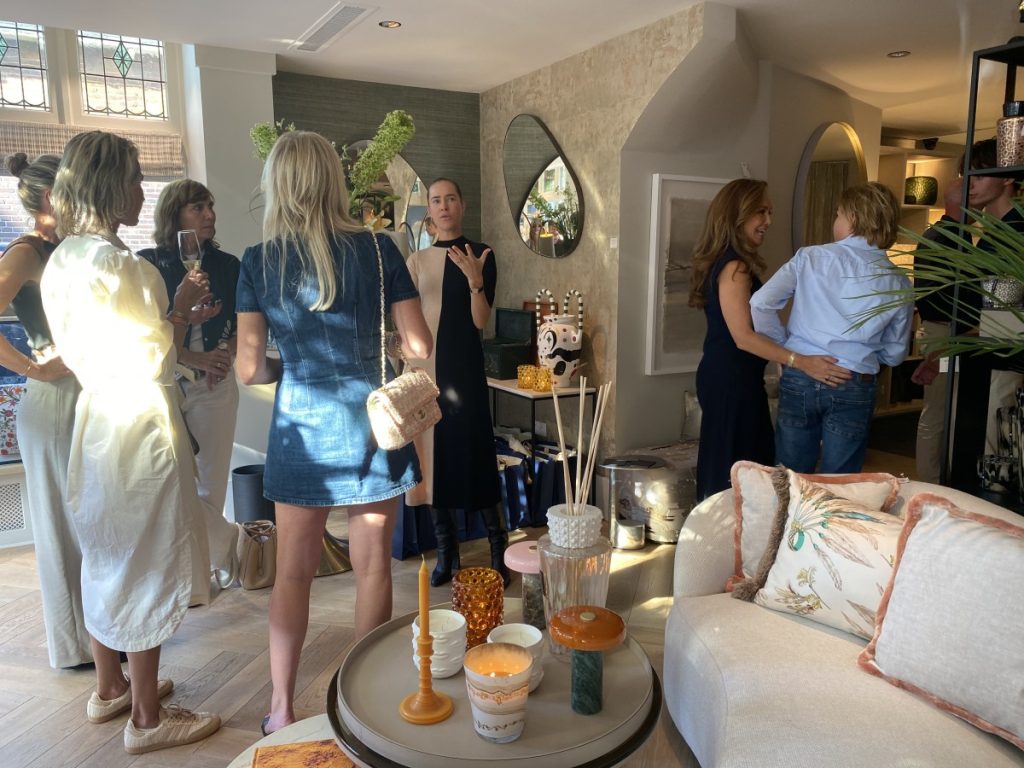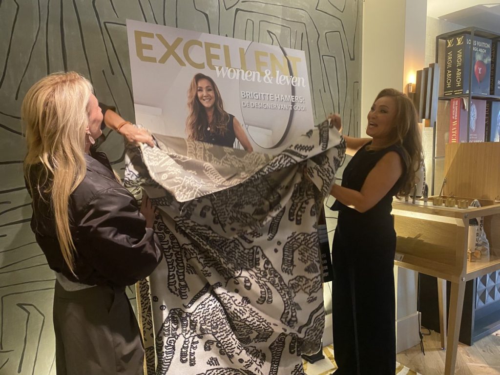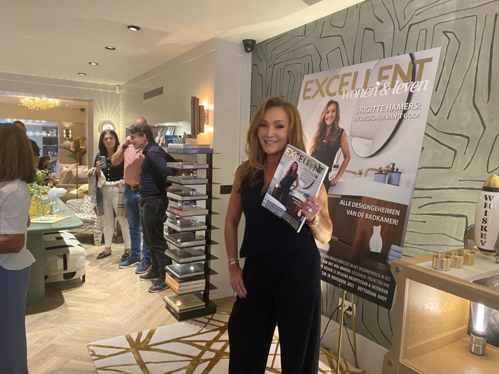 3 sept.- Gisterenmiddag werd bij Proluca aan de Naarderstraat de cover onthuld van de nieuwste editie van het luxueuze woon-inspiratie magazine EXCELLENT. De exclusieve uitgave verschijnt eens per twee maanden. Op de cover Larense interieurontwerper Brigitte Hamers door het toonaangevende blad over wonen & leven omschreven als dé designer van het Gooi. Een rede voor Brigitte, eigenaresse van Proluca de flessen open te trekken voor een select groepje familie vrienden en klanten. Vriendin Leontine Ruiters, televisie presentatrice en actrice had samen met Brigitte de eer de feestelijke handeling te verrichten. Foto’s: LJ