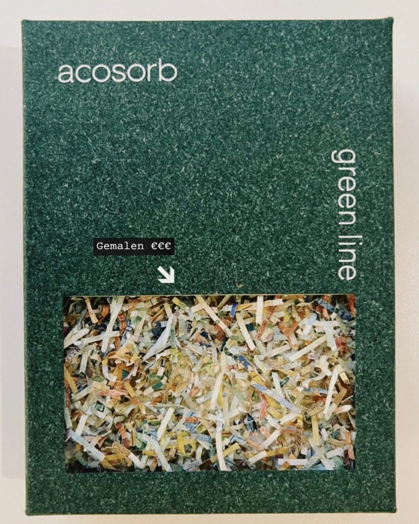 Onze partner van @acosorb had het geweldige idee om het eens bij de Duitse Bundesbank te proberen. Snel volgde het blije nieuws: er zouden twee kuub gemalen geld uit Duitsland komen. Dit is nu – als je heel goed kijkt – te zien op het plafond in ons restaurant en zorgt voor een prettige akoestiek.