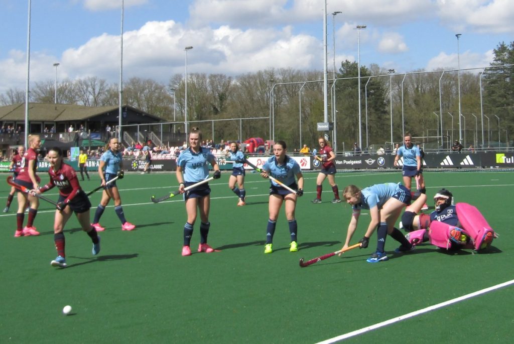 12 apr.- De hockeysters van Laren hebben zondagmiddag op eigen veld koploper Klein Zwitserland met 2-1 verslagen. Door dit resultaat blijven zij lid van de kopgroep in de overgangsklasse.