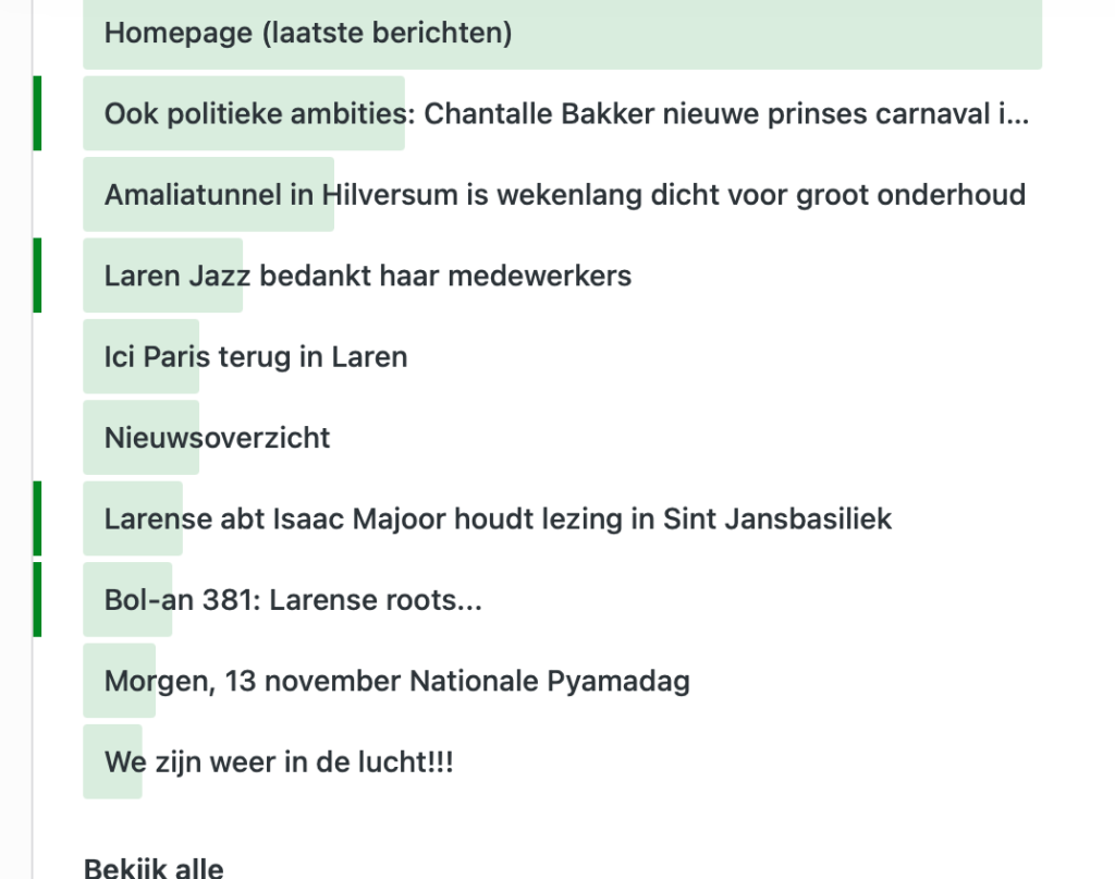Donderdag: 1357x bekeken +Top 10 meest gelezen berichten 14 november 202514 november 2025 14 nov.- Foto: Betty Bruin Deel dit bericht via Facebook: Klik om te delen op Facebook (Opent in een nieuw venster) Facebook Vind ik leuk:Vind-ik-leuk Aan het laden... Delen