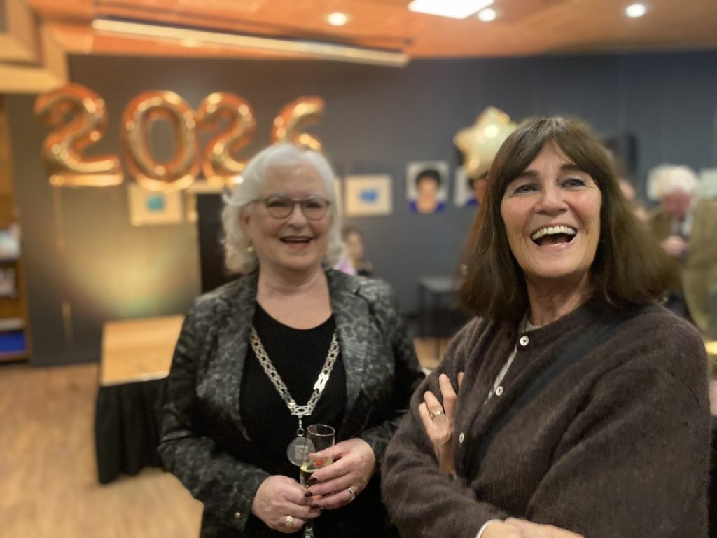 7 jan.- Ondanks de slechte weersomstandigheden was er een verrassend grote opkomst gisteren bij de Nieuwjaarsreceptie van de gemeente Laren Burgemeester Joan de Zwart-Bloch hield een indrukwekkend verhaal over haar tijdelijk waarnemerschap in ons dorp. Daarna zette zij het organiserend comité van 100 jaar basiliek in het zonnetje , de organisatoren van het inmiddels traditionele Oktoberfest en Boutique 33, moeder en dochter die Bijzonder Laren hebben geholpen.