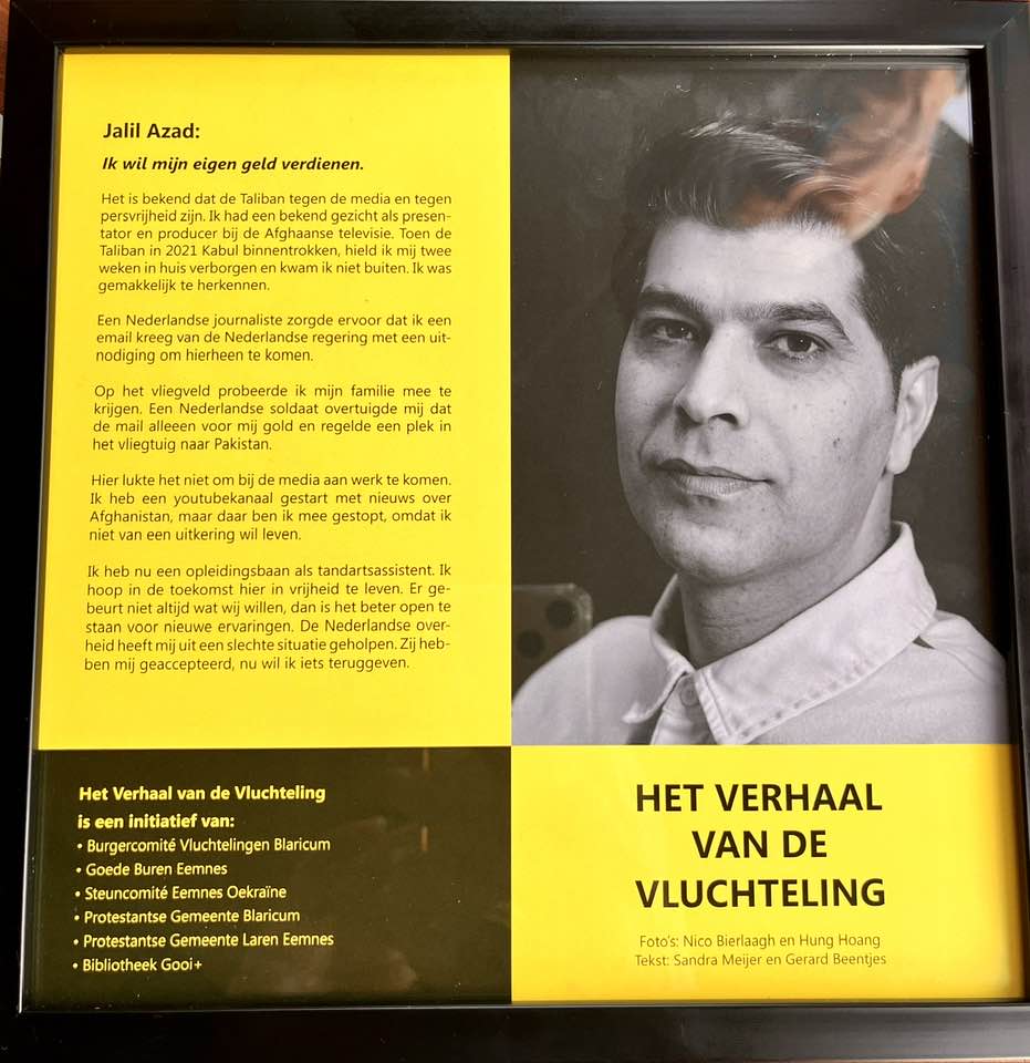 28 juni.-Het verhaal van de Vluchteling is gisterenavond geopend door Larens Behoud wethouder van Asiel en Migratie Niels Rood. Twaalf vluchtelingen uit Laren, Blaricum en Eemnes zijn geportretteerd op posters. De Afghaanse journalist Jalilazad uit Laren heeft inmiddels een baan als tandartsassistent in opleiding bij Beekman tandartsen.