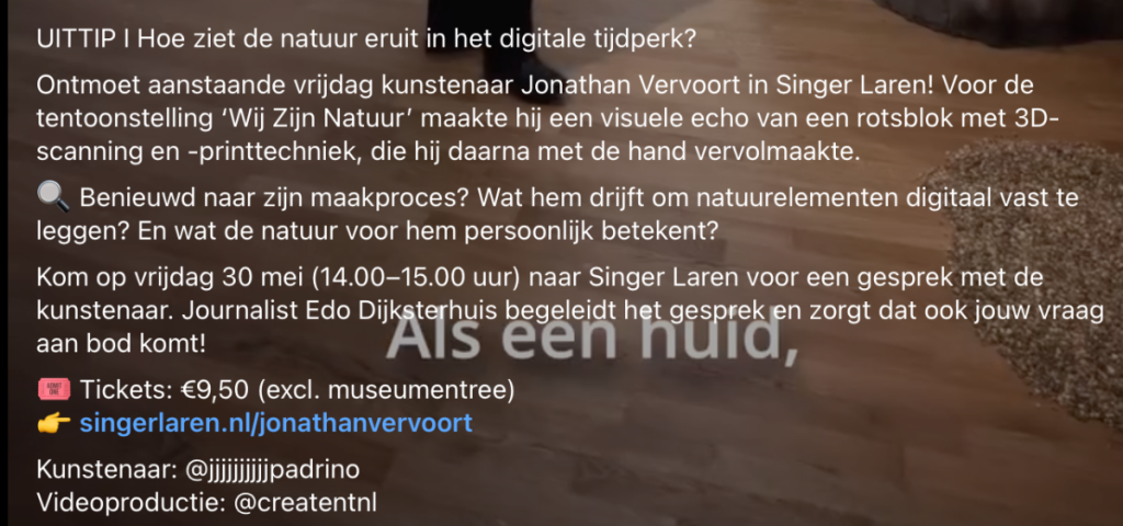 Hoe ziet natuur eruit in digitale tijdperk? 27 mei 202527 mei 2025 KIJK HIER NAAR FILMPJE Deel dit bericht via Facebook: Klik om te delen op Facebook (Opent in een nieuw venster) Facebook Vind ik leuk:Vind-ik-leuk Aan het laden... Delen
