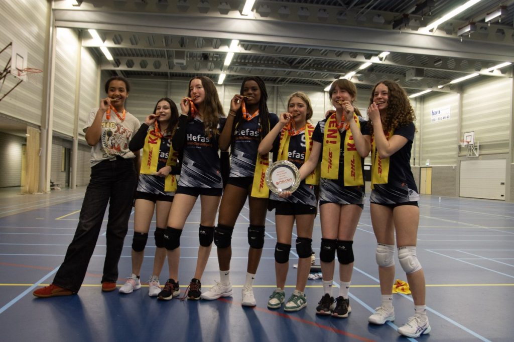 De meiden werden daarna direct gehuldigd door voorzitter Wendy Kanters en zij mogen zich dan ook NEVOBO kampioen 3e klasse noemen. Bron: The Smashers