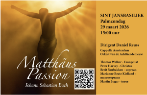 - De laatste kaarten: Kom op Palmzondag 15.00 uur naar de Matthäus Passion in de Sint Jansbasiliek