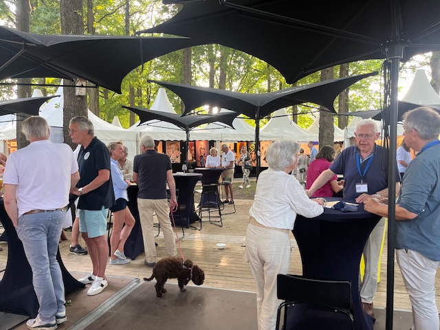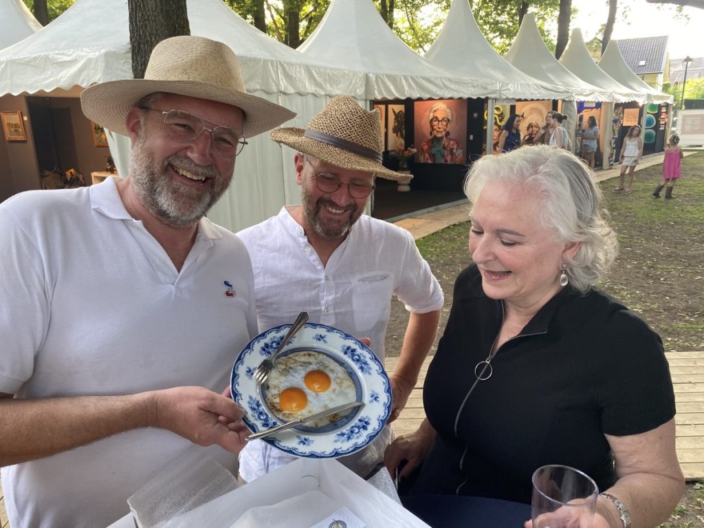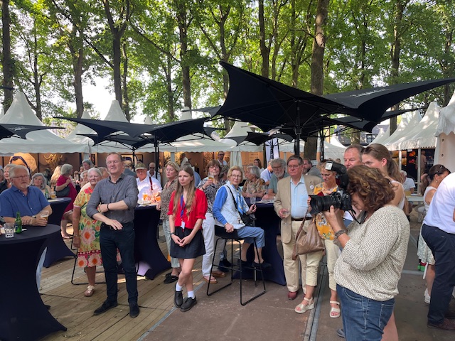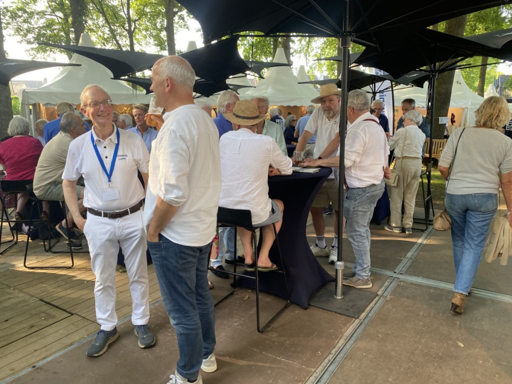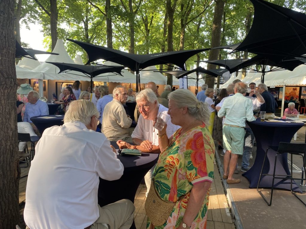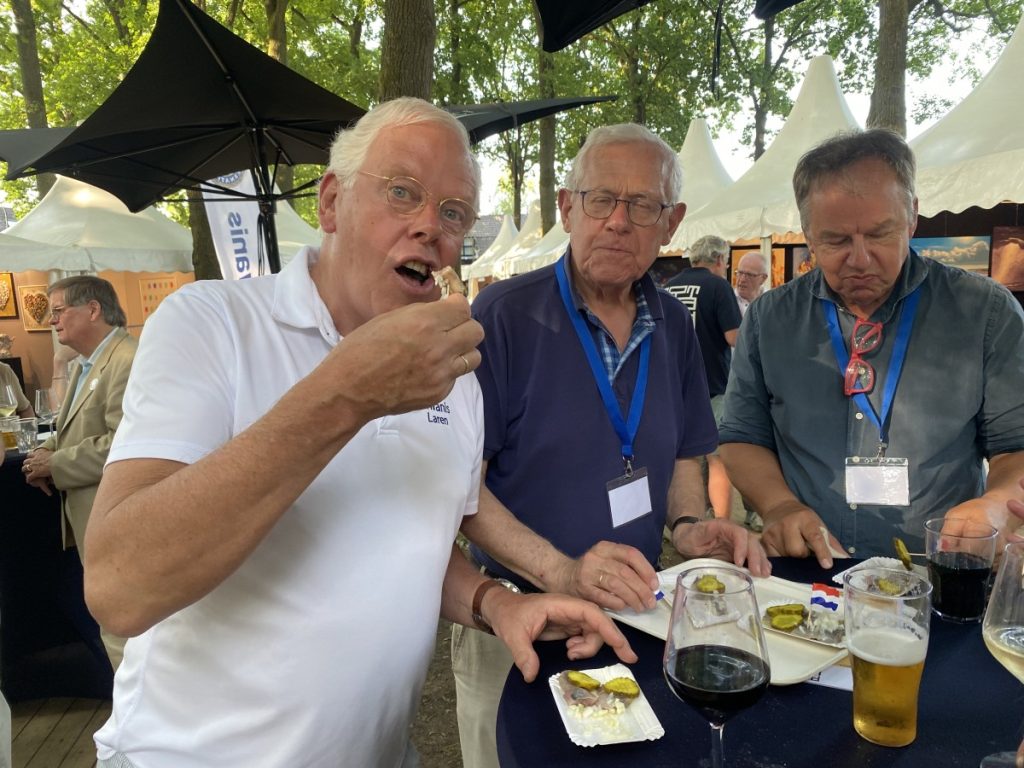 13 juni.- Vrijdag de 13e leek een schot in de roos voor een geanimeerde haringparty op Art Laren op de Brink, zoals traditioneel’ weer georganiseerd door serviceclub Kiwanis. De party werd geopend door waarnemend burgemeester Joan de Zwart-Bloch. Een week aan het hoofd van de gemeente is ze vertrouwd met de mensen die ze natuurlijk ook al kende uit haar Blaricumse tijd dat ze in de buurgemeente burgemeester was. Kortom iedereen vermaakte zich kostelijk. De haring die officieel a.s. woensdag als ‘Hollandse Nieuwe’ wordt gepresenteerd, smaakte deze party als nieuw.