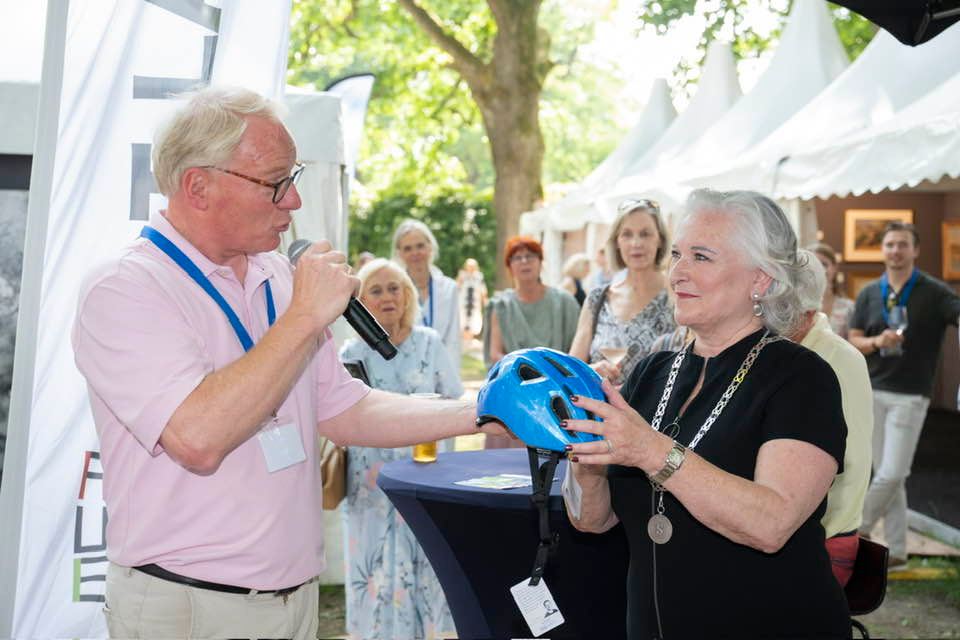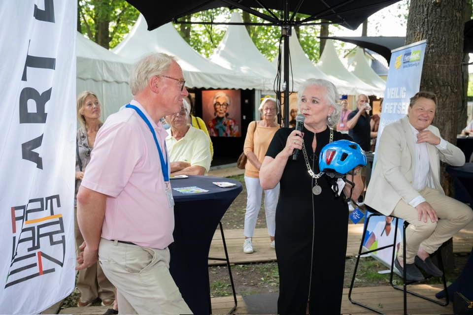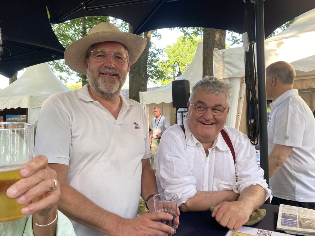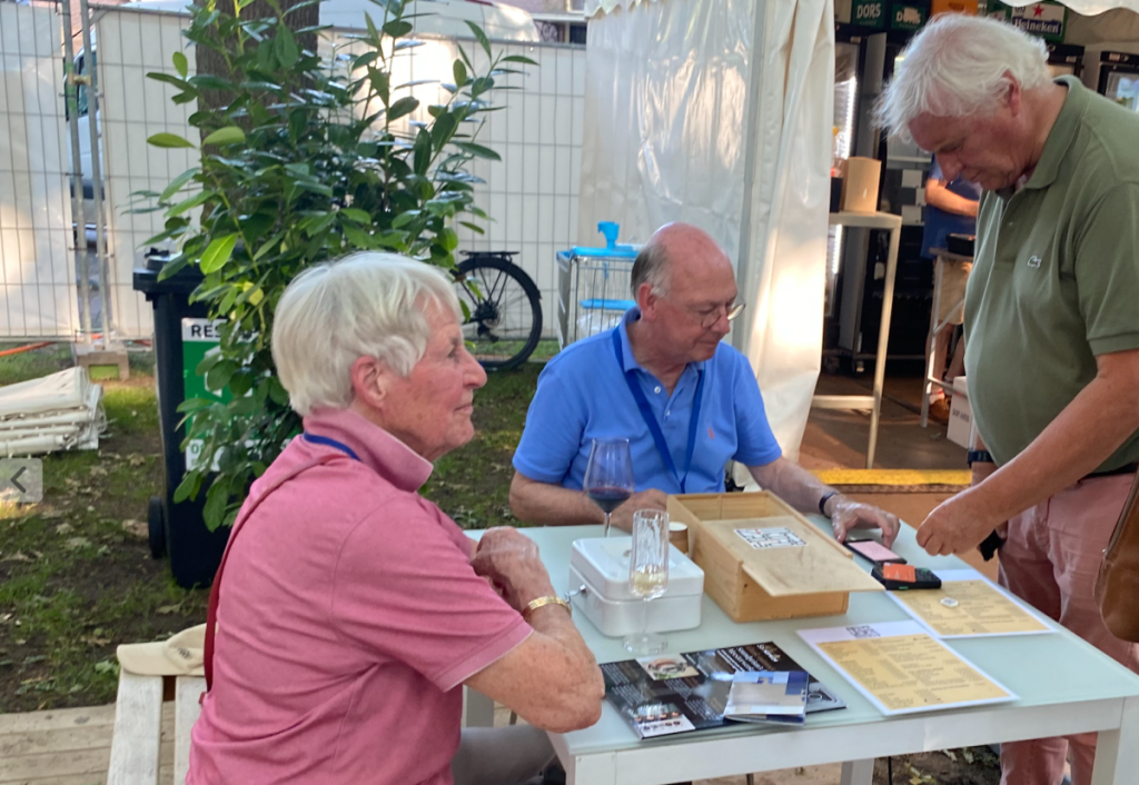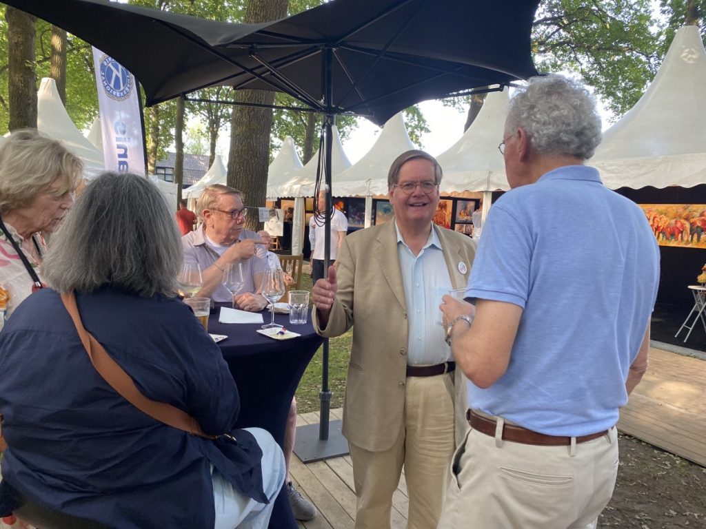 13 juni.- Vrijdag de 13e leek een schot in de roos voor een geanimeerde haringparty op Art Laren op de Brink, zoals traditioneel’ weer georganiseerd door serviceclub Kiwanis. De party werd geopend door waarnemend burgemeester Joan de Zwart-Bloch. Een week aan het hoofd van de gemeente is ze vertrouwd met de mensen die ze natuurlijk ook al kende uit haar Blaricumse tijd dat ze in de buurgemeente burgemeester was. Kortom iedereen vermaakte zich kostelijk. De haring die officieel a.s. woensdag als ‘Hollandse Nieuwe’ wordt gepresenteerd, smaakte deze party als nieuw.