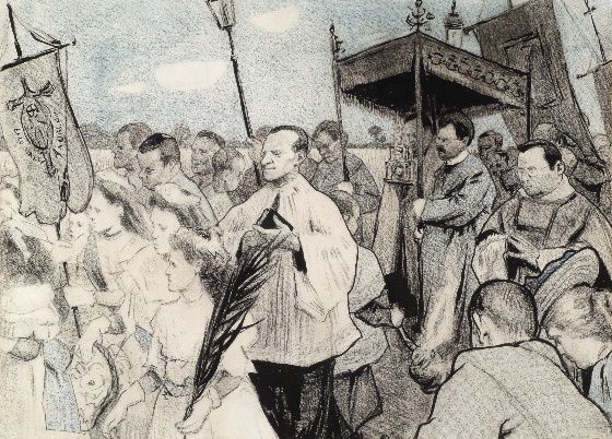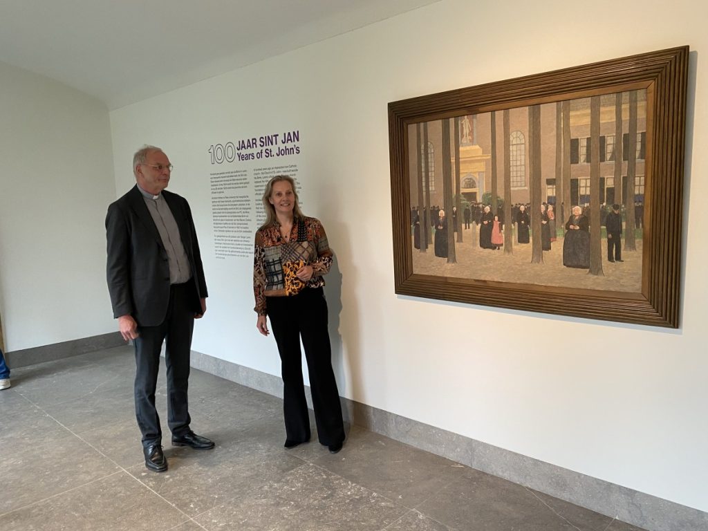 27 sept.- Gisterennamiddag opende pastoor Nico van der Peet de tentoonstelling i’100 jaar Sint Jan’ samengesteld door conservator Anne Van Llienden n de Van den Brink Galerij in Singer Laren