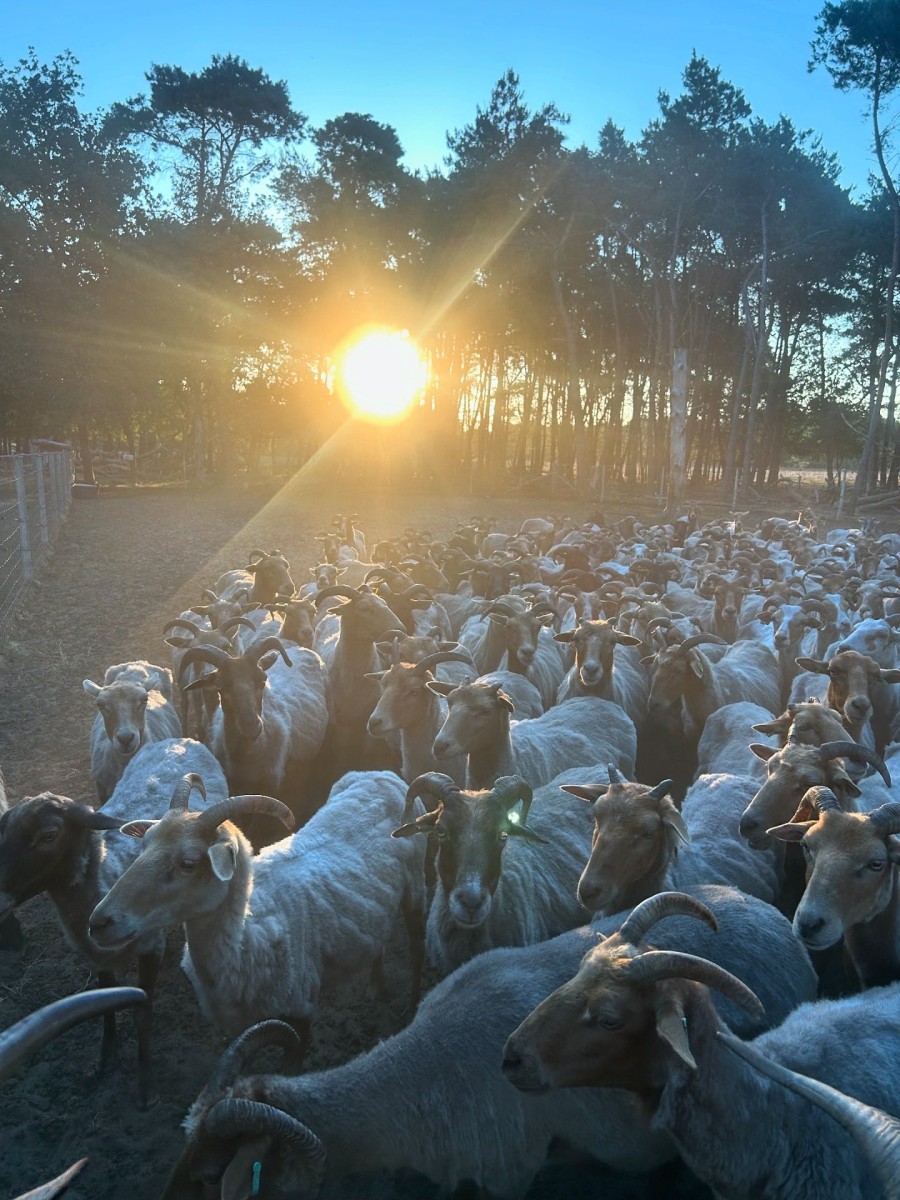 4 juli.-Dat waren pittige dagen ….. hele hoge temperaturen, stof, vroeg vertrekken met de kudde en door de zinderende hitte weer terug over de open hei…. Het was niet niks voor de kudde, de honden en de herder
