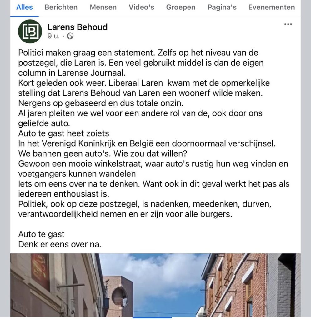 3 juni.- De Gemeenteraadsverkiezingen zijn volgend jaar maart. De eerste discussies in het dorp komen op gang. Noud Bijvoet D66 reageert op onderstaand stukje van Larens Behoud.