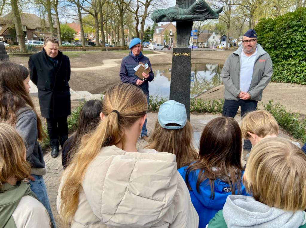 9 apr.- Vanochtend werden verschillende groepen uit de in Laren gelegen scholen wegwijs gemaakt in de geschiedenis van de Tweede Wereldoorlog en 80 jaar bevrijding. Begeleid door veteranen en het comité’ 4-5 mei werd er uitleg gegeven over de herinneringsbomen, het tijdelijk Holocaust monument op de Brink en werd de tentoonstelling bezocht in de brandweerkazerne over het verleden en heden van onze militaire geschiedenis. v