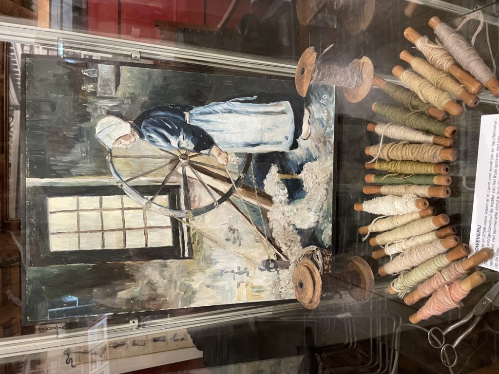 Inwoners van de Laren hebben zich zo’n 250 jaar beziggehouden met spinnen en weven, dus met textielnijverheid. Weven begon in Laren in het verleden als thuisarbeid en werd later fabrieksmatig uitgevoerd. Eeuwenlang heeft een groot deel van de bevolking van Laren ‘om den brode’ gesponnen en geweven. Tijdens de tentoonstelling kun je een weefgetouw bewonderen, spinnenwielen, tapijten die in Laren gemaakt zijn, en al het andere wat met de weven te maken heeft gehad. Er zullen ook films gedraaid worden. Hiermee haakt de HKL aan bij het thema van het erfgoedfestival ‘Makers in het Gooi’. Bij de tentoonstellingen zijn ingezonden, persoonlijke verhalen te lezen. De tentoonstellingen blijven tot oktober.