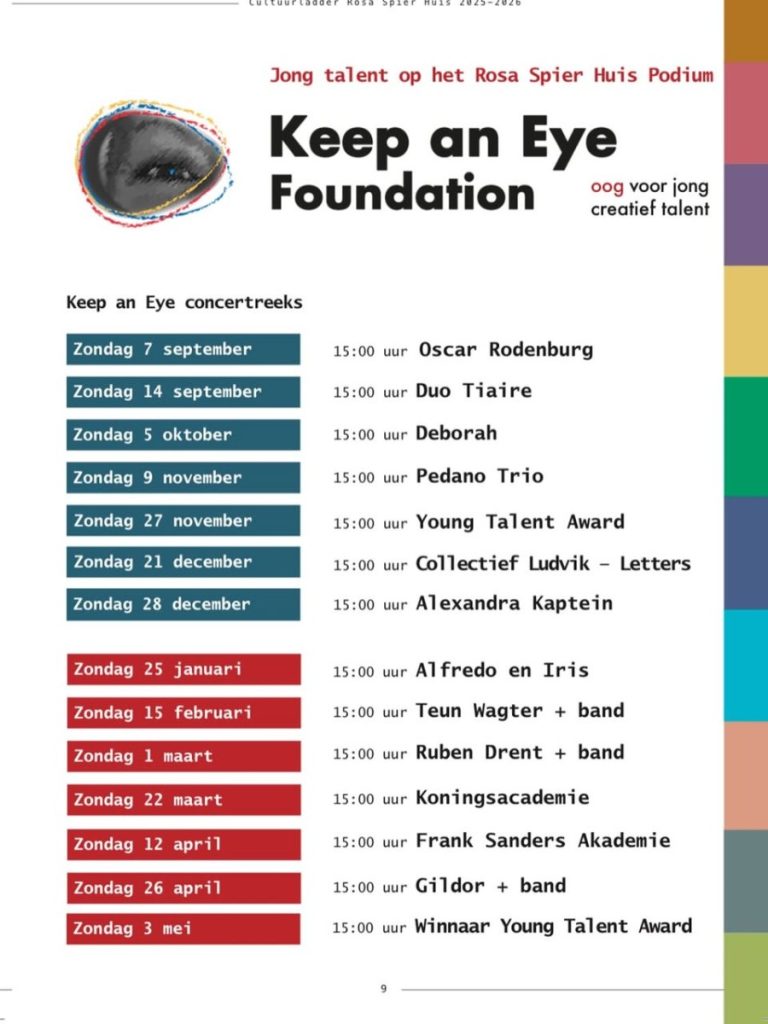 22 aug.-De verkoop voor het nieuwe Theaterseizoen is gestart! Met ook komend seizoen de Rosa Spier Tour de Chant reeks, Rosa Spier Cabaret, Klassiek en natuurlijk de Keep an Eye Podiumreeks met veelbelovend jong talent. Kijk voor het het volledige programma op www.rosaspierhuis.nl/theater