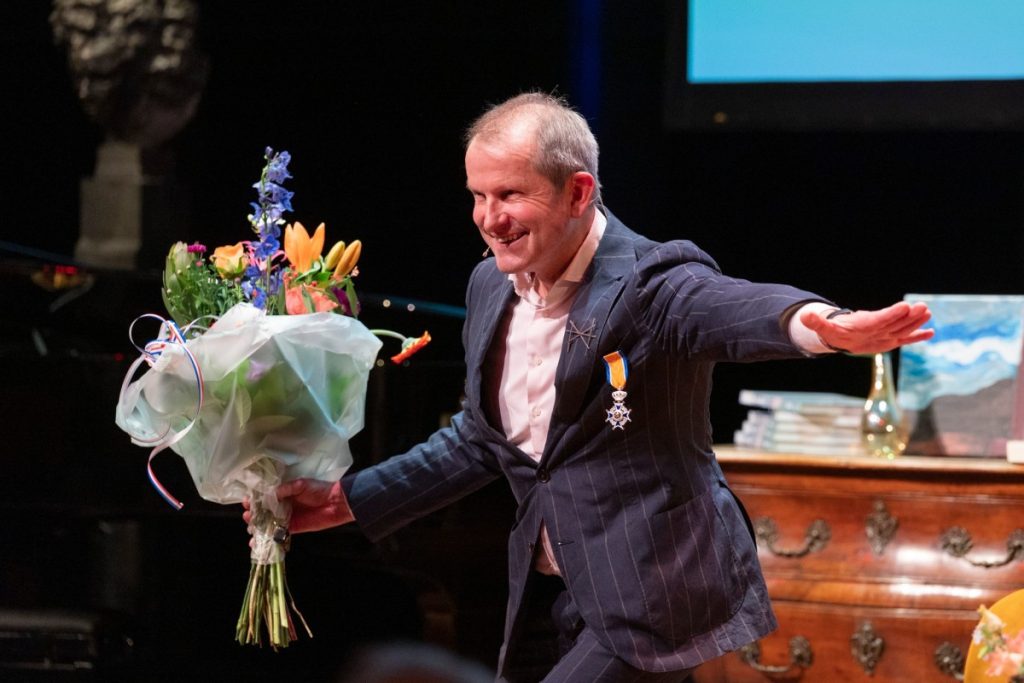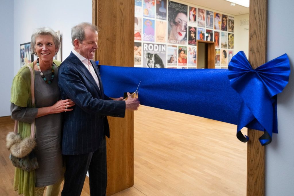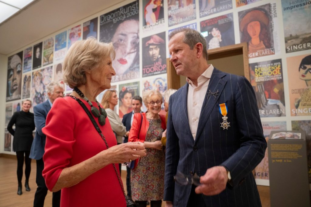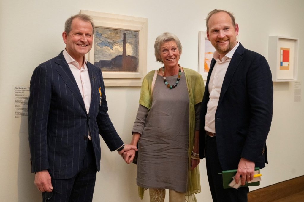 Een onvergetelijk moment: Jan Rudolph werd benoemd tot Ridder in de Orde van Oranje-Nassau door burgemeester van Laren Joan de Zwart-Bloch. En alsof dat nog niet genoeg was, werd ook een prachtige aanwinst onthuld: een Mondriaan in de collectie!