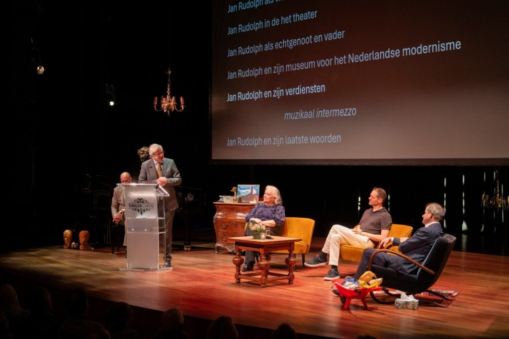 In het theater werd Jan Rudolph vanuit verschillende perspectieven geëerd: zijn betekenis voor de kunstgeschiedenis, als collega, zijn warme banden met schenkers en verzamelaars, zijn rol in het theater én in zijn gezin. Met muzikale odes door mezzosopraan Fee Suzanne de Ruiter en flamencogitarist Eric Vaarzon Morel. Dank aan Lucas De Man voor de sprankelende presentatie van de avond — er is zóveel gelachen!