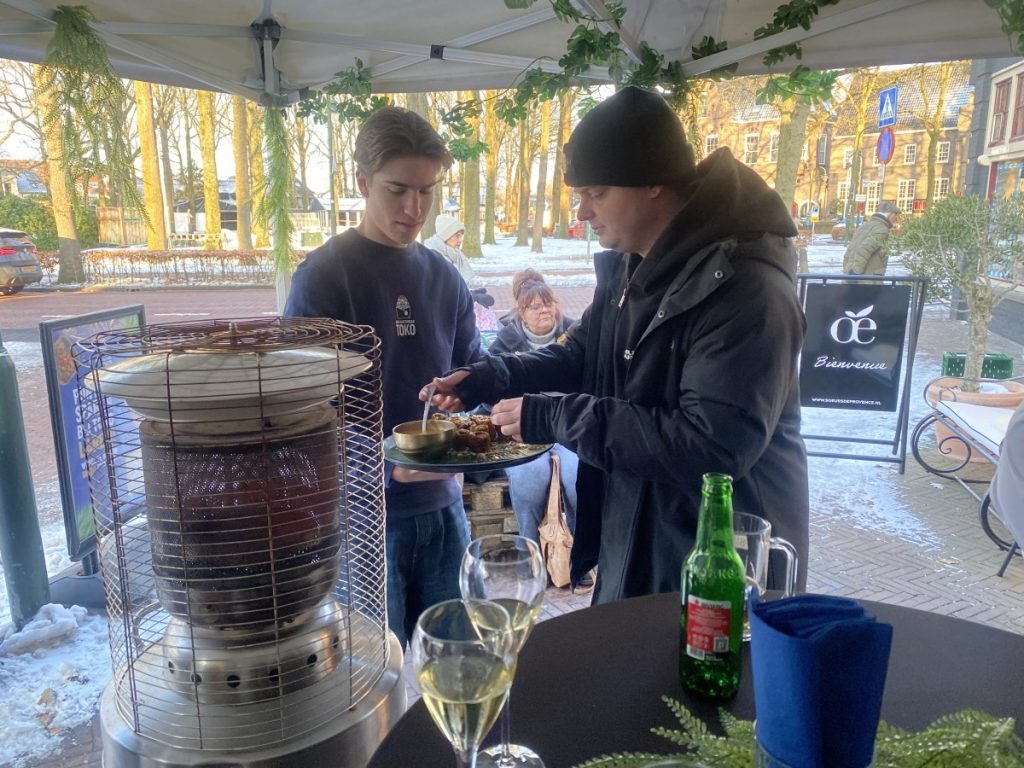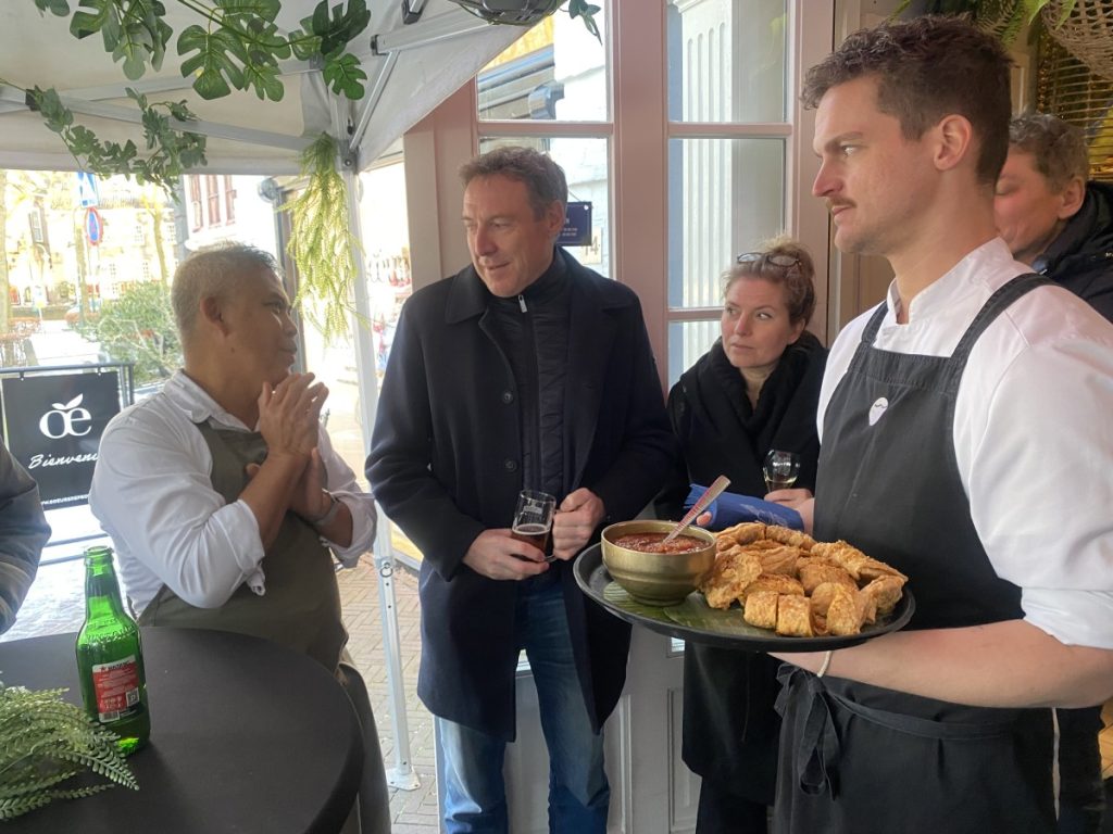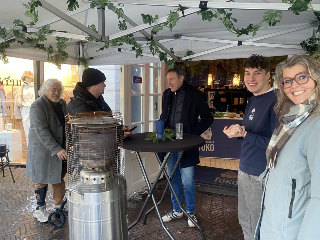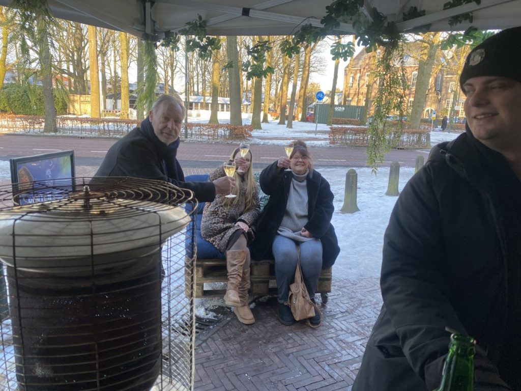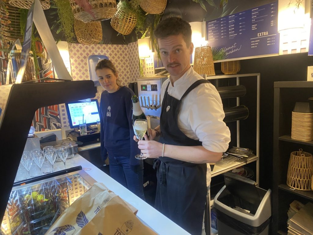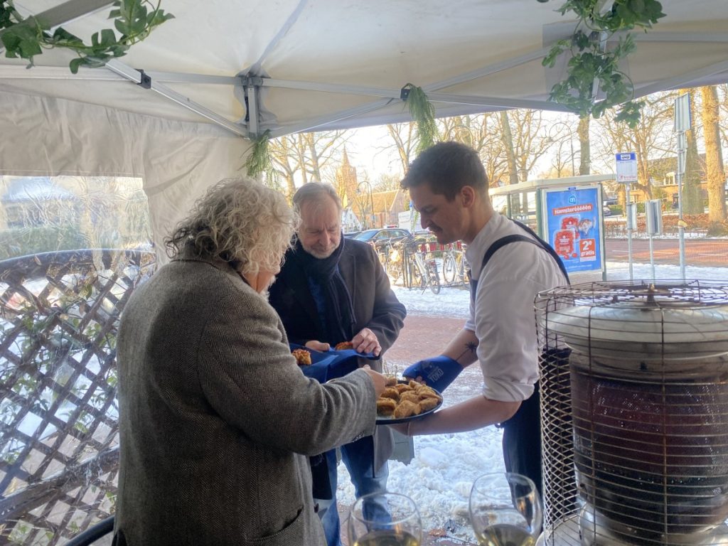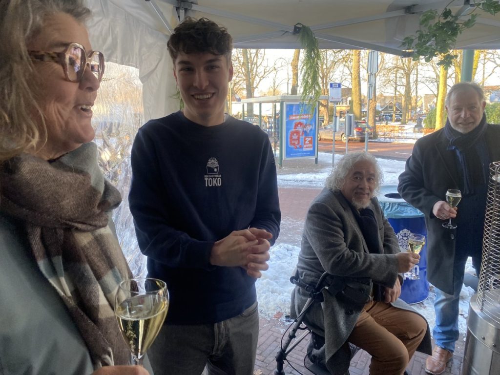 10 jan.- Vanmiddag rond een uur of drie hield Ron Gastrobar TOKO haar nieuwjaarsborrel buiten in een partytent aan de Brink. De sympathieke ’tasting’ was georganiseerd door studenten van de Hoge School van Amsterdam om voor de TOKO meer naamsbekendheid genereren, aldus een van de studenten commercieel economie Liam Makker die in het restaurant werkt. Er was echte champagne en chef Agus vertelde over de overheerlijke Indonesische snacks. Bron en foto’s:LJ
