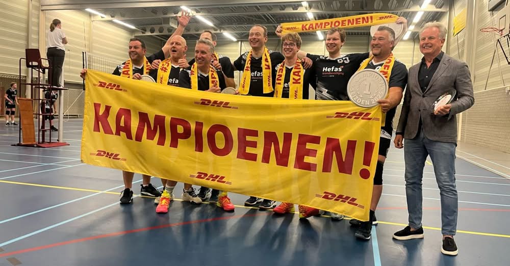 7 apr.- Afgelopen vrijdag werd Heren 1 kampioen tijdens de laatste wedstrijd van het seizoen. Met een overtuigende overwinning in de laatste wedstrijd (3-1) hebben onze mannen het kampioenschap binnengesleept. Wethouder Sport Jan van Midden was erbij. Van harte!