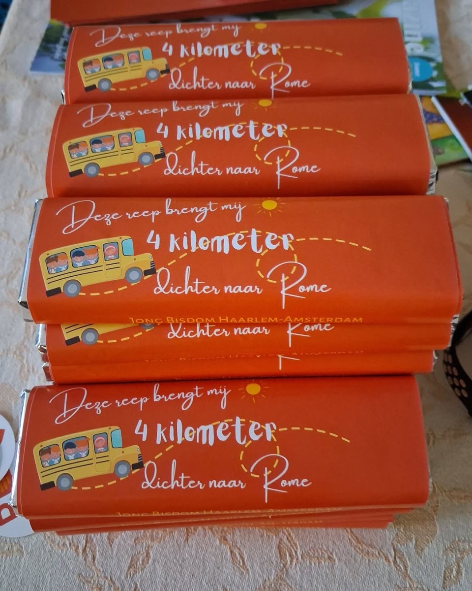 6 juli.- Een sympathieke ‘crowdfunding-actie’. Zondag ga ik chocoladerepen verkopen om geld op te halen voor mijn reis naar Rome. Ook jij kan me helpen door een reep te kopen of te bestellen door mij een appje te sturen! Het kost 5 euro per reep. En 3 repen is 12 euro. (Wat een goede deal) alvast bedankt!
