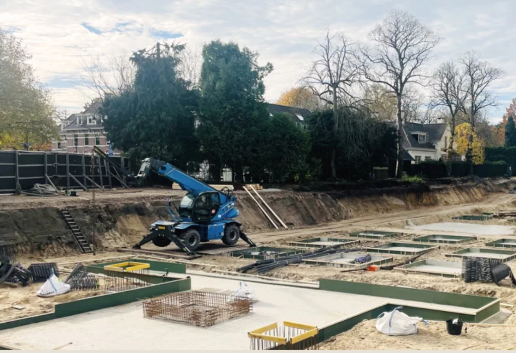 24 nov.- Het voormalige gebouw van de Rabobank is gedemonteerd en wordt gerecycled – het is nog slechts een herinnering. Op deze mooie locatie in het levendige dorp Laren maakt het verleden plaats voor de toekomst.En in dit geval mogen we dat zeker een positieve ontwikkeling noemen. Want wat er komt, is vele malen mooier dan wat er is verdwenen. Direct nadat het laatste puin is afgevoerd zijn de opbouwende werkzaamheden begonnen. De plattegrond van Nispen | Laren is al herkenbaar, evenals de contouren van de ondergrondse parkeergarage. De betonnen vloeren worden gestort en de fundering van de liften, die de bewoners straks rechtstreeks naar hun penthouse vervoeren, tekenen zich duidelijk af.De voortgang is van dag tot dag zichtbaar. De gemeente Laren heeft recent ingrijpende maatregelen genomen om de grondwaterstand onder controle te krijgen en die werpen nu hun vruchten af. Ondanks de hevige regenval van de afgelopen weken bevindt de grondwaterstand zich ruimschoots onder het laagste punt van de nieuwbouw.