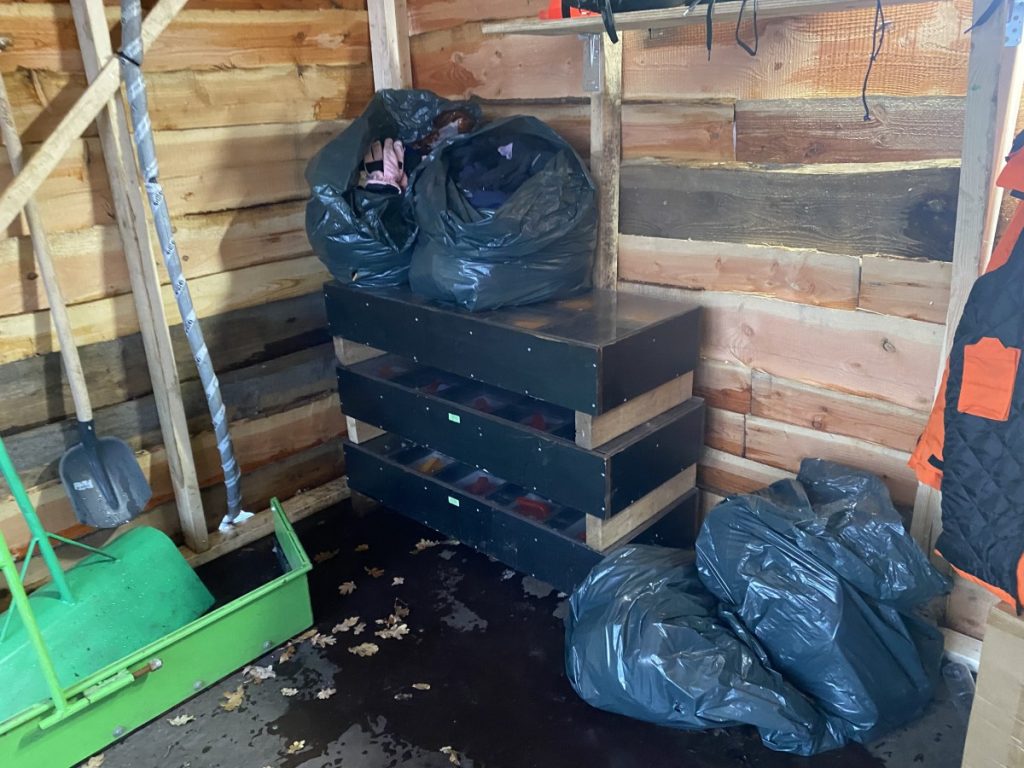 Volle vuilniszakken met gevonden voorwerpen – tassen en handschoenen- bij Wintervillage. Zolang het ijsbaantje dit laatste weekend open is, kunt u de eventueel door u verloren of achtergelaten voorwerpen afhalen.